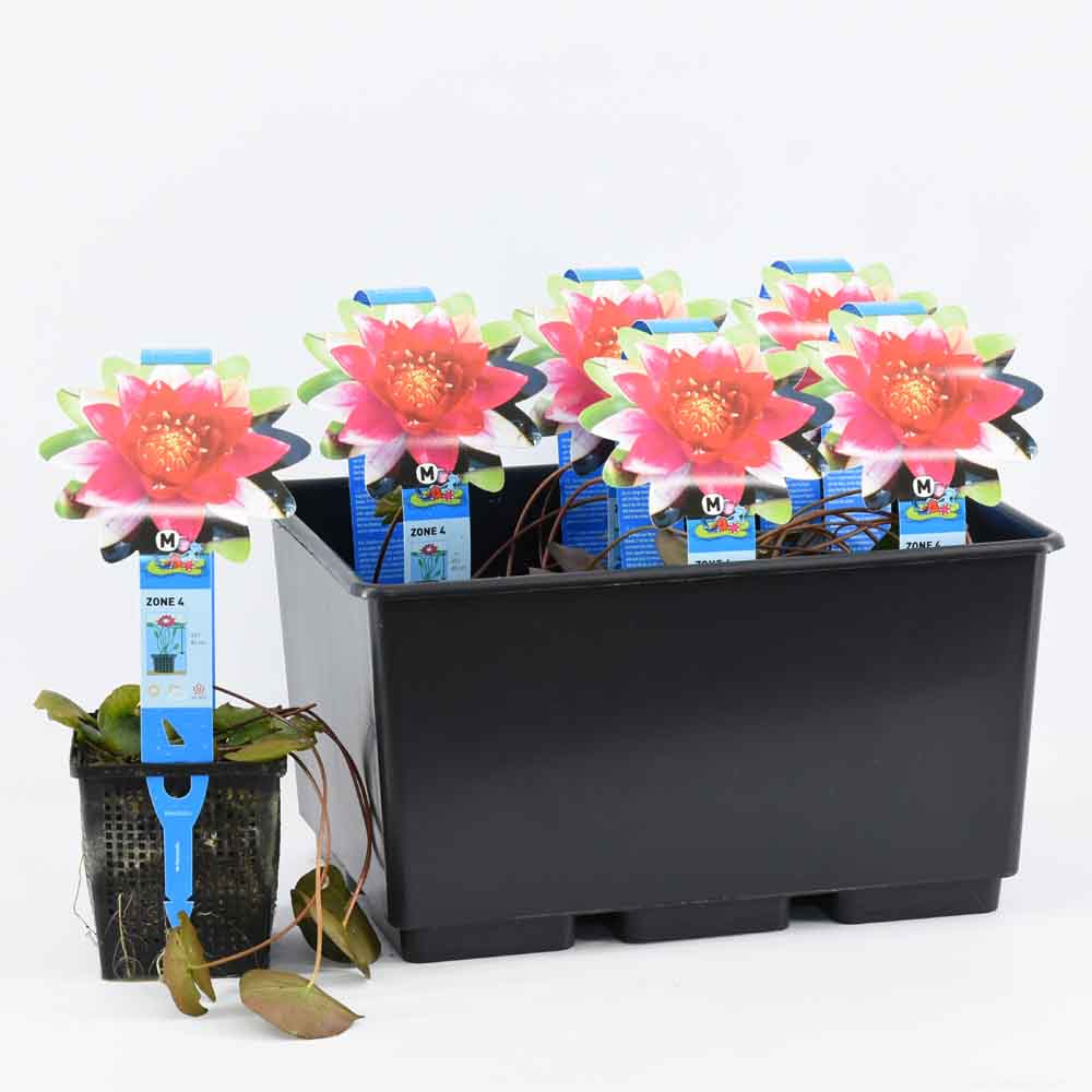 Plante de Nenuphar de couleur rouge. profondeur de plantation : -40 / -80 cm Période de floraison : de juin-aout