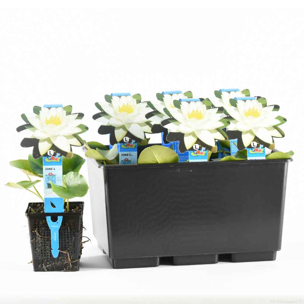 Plante de Nenuphar de couleur blanche. profondeur de plantation : -20 / -50 cm Période de floraison : de juin-septembre
