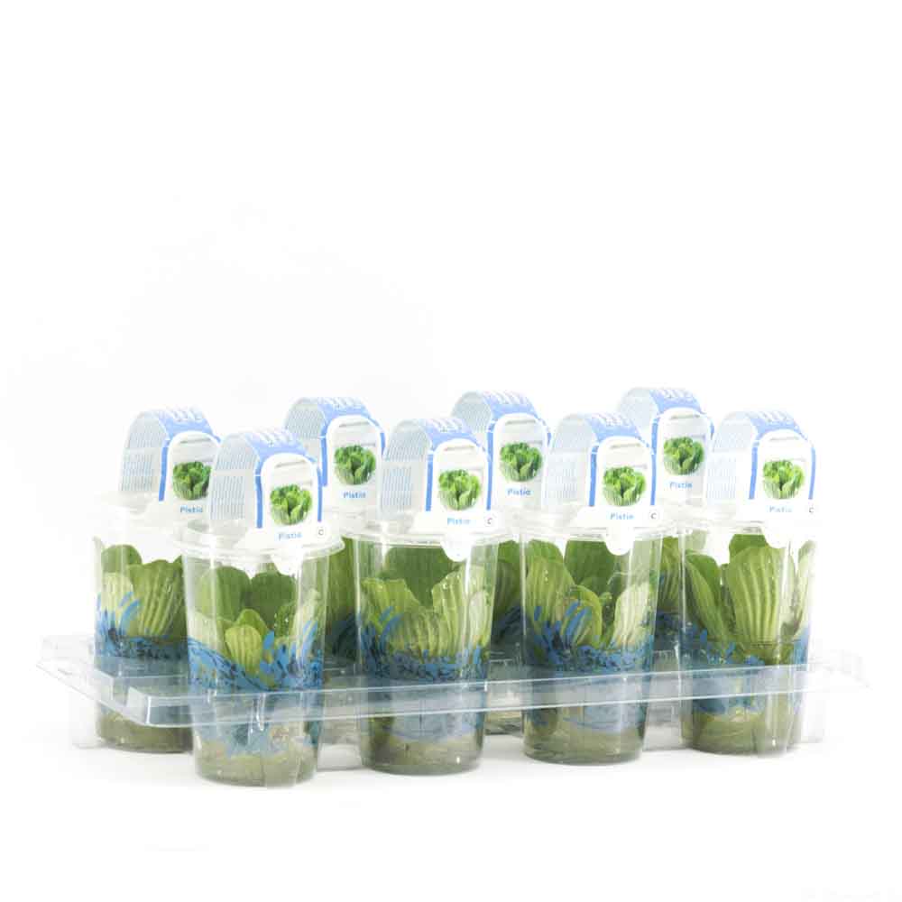 Plante d'étang : Stratiotes aloides Cup medium, plantes à oxygène dans une tasse en plastique avec couvercle