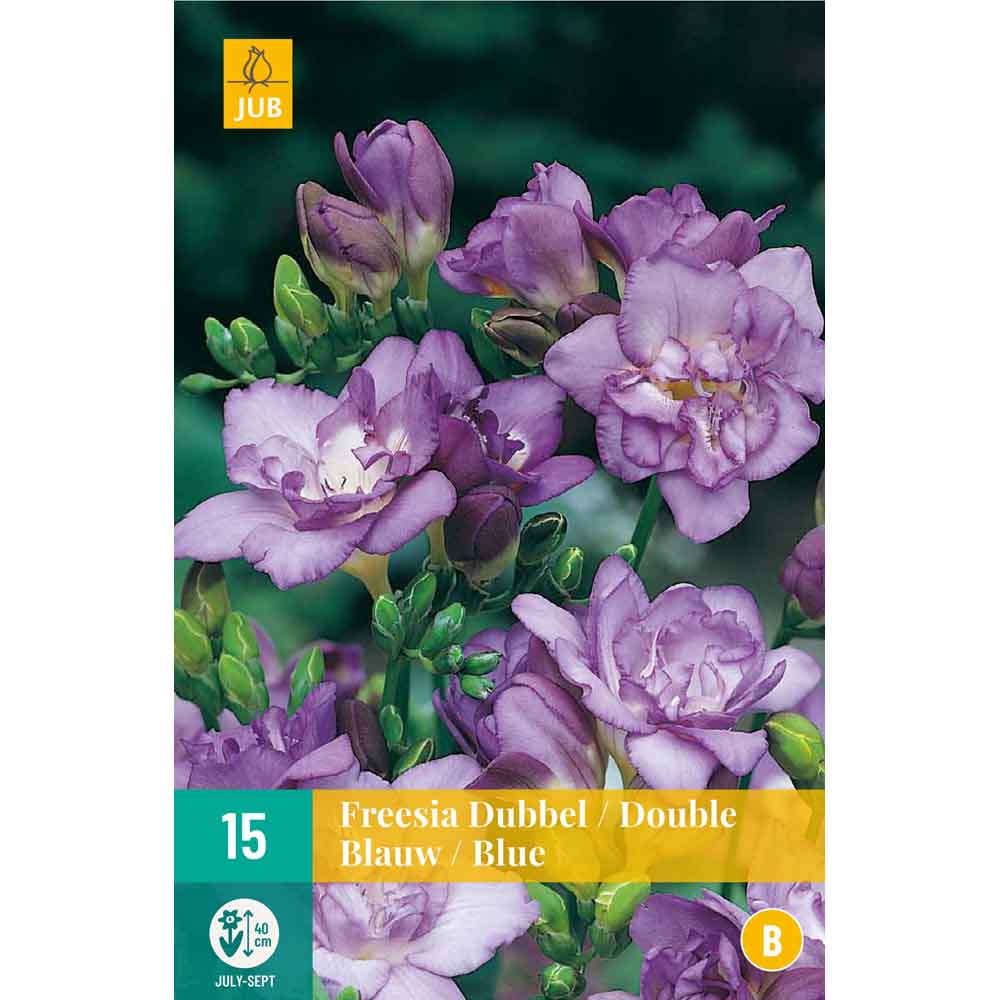 Freesias double blue vous surprend avec des fleurs doubles merveilleusement parfumées. Cette variété de freesia est un jardinier sans problème qui fleurit facilement. De plus, c'est une excellente fleur coupée et merveilleuse à combiner avec d'autres bulbes d'été.