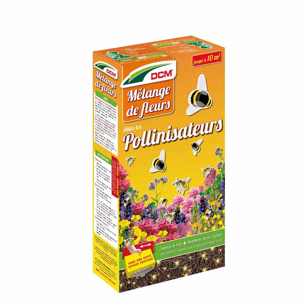 Contient plus de 40 variétés de fleurs annuelles et vivaces, telles que: népéta, sauge des prés, valériane des jardins, phacélie et œnothère. Attire les pollinisateurs pour améliorer la récolte. L’amendement organique du sol permet une meilleure répartition du mélange et améliore l’enracinement. Semences de fleurs + amendement organique du sol (60% mat. org.) mélangé à des bactéries