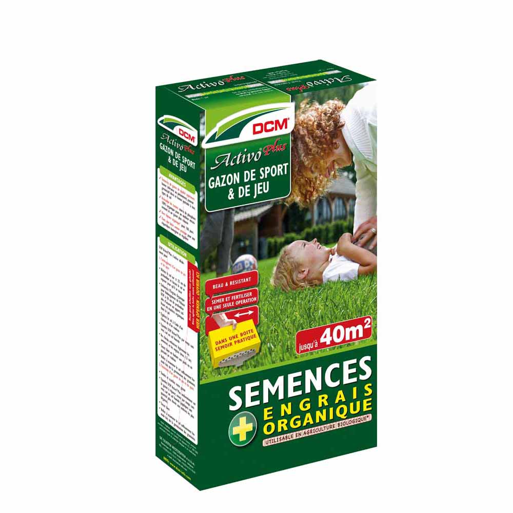 Semences Activo® Plus DCM 600g 40m² Semences de gazon pour un gazon de sport et de jeu, mélangées à un engrais