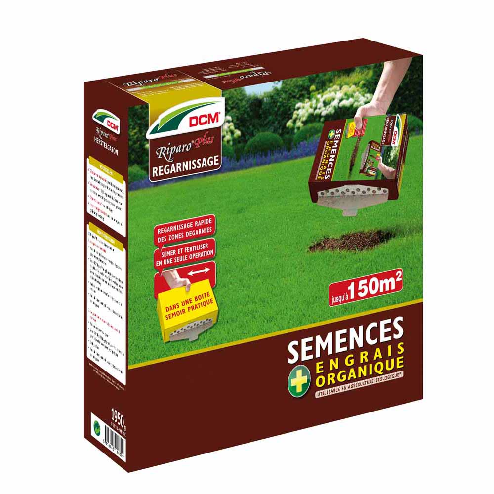 Semences de gazon à germination rapide en mélange avec un engrais riche en phosphore dans une boîte semoir pratique. Pour réparer les zones dégarnies ou pour sursemer le gazon après une scarification ou un traitement contre la mousse. L’engrais améliore le développement des racines. Semences de gazon + engrais composé organique NP 4-23