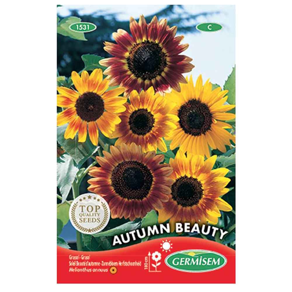 Annuel. Magnifique tournesol mi-haut aux couleurs automnales (coloris jaune d'or, rouge brun et bronze). Plante portant de nombreuses ramifications florifères, excellentes fleurs à couper. Sa culture est facile. Pour une culture hâtée, semez en pots que vous planterez ensuite à l´endroit définitif (distance 50 cm) ou semez à partir de fin avril, directement en place et éclaircissez si nécessaire à 50 cm. Fleurit de juillet à octobre.