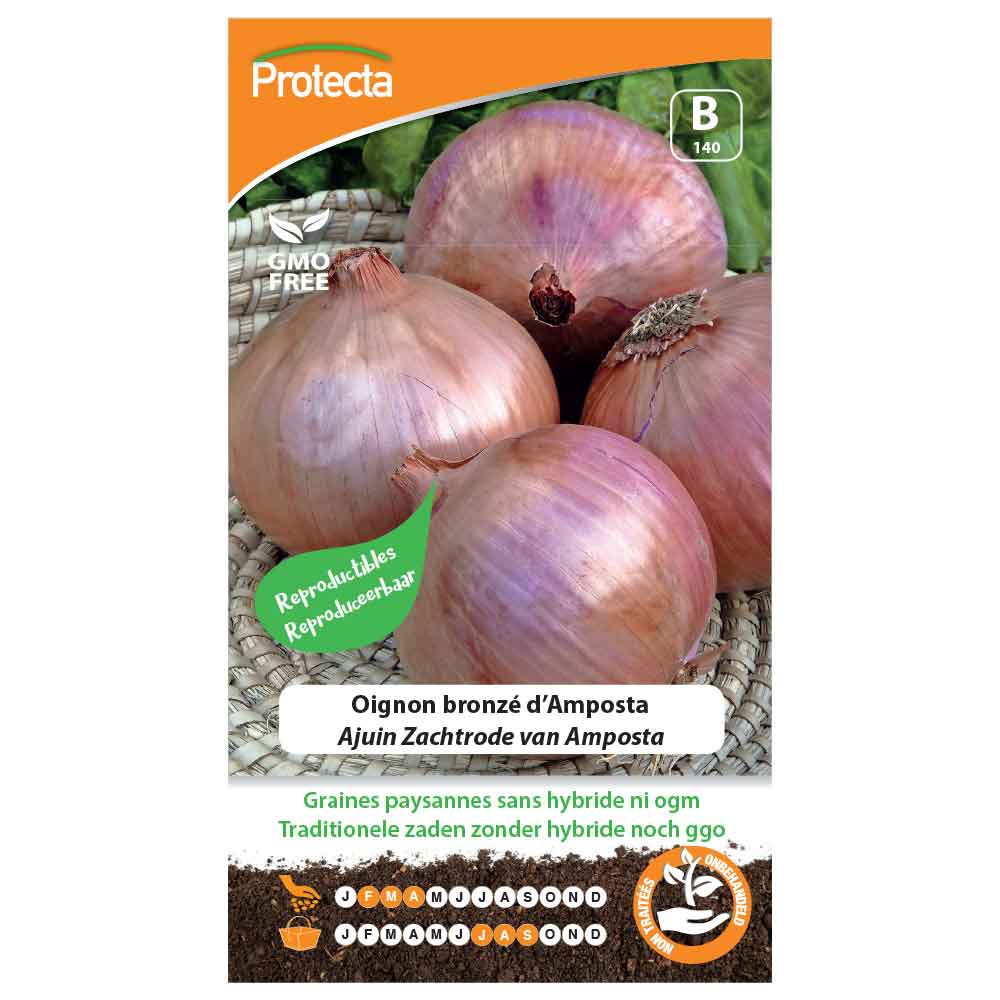 Variété tardive, produisant des bulbes épais d'un beau rouge cuivré à chair rosée. Oignon de très bonne conservation. Semis:Février à Avril en place, en espaçant les lignes de 20 cm. Éclaircir à 10 cm sur le rang dès que les plants sont assez développés. Récolte:d'Août à Septembre dès que le feuillage est couché et sec. Conseils:l'aneth, le thym et le romarin protègent les oignons de la mouche, améliore leur croissance et leur saveur.