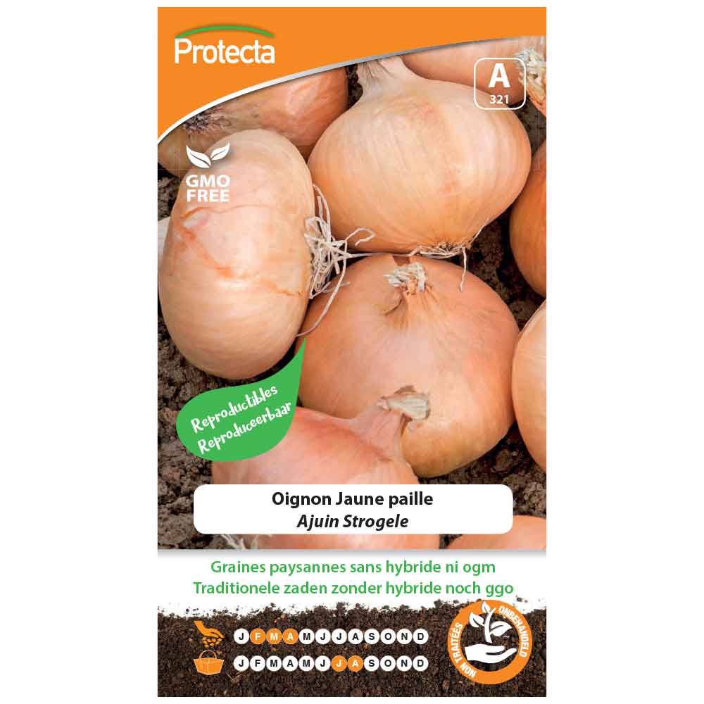 Variété assez précoce et productive. Bulbe plat jaune cuivré se conservant bien tout l'hiver. Semis:Février à Avril en place, en espaçant les lignes de 15 à 20 cm. Éclaircir dès que les plants sont assez développés. Récolte:de Juillet à Août dès que le feuillage est couché et sec. Soulever les plantes entières et les laisser sécher soit directement sur place, soit en bottes suspendues dans un local ventilé. Conseils:l'aneth, le thym et le romarin protègent les oignons de la mouche, améliore leur croissance et leur saveur.