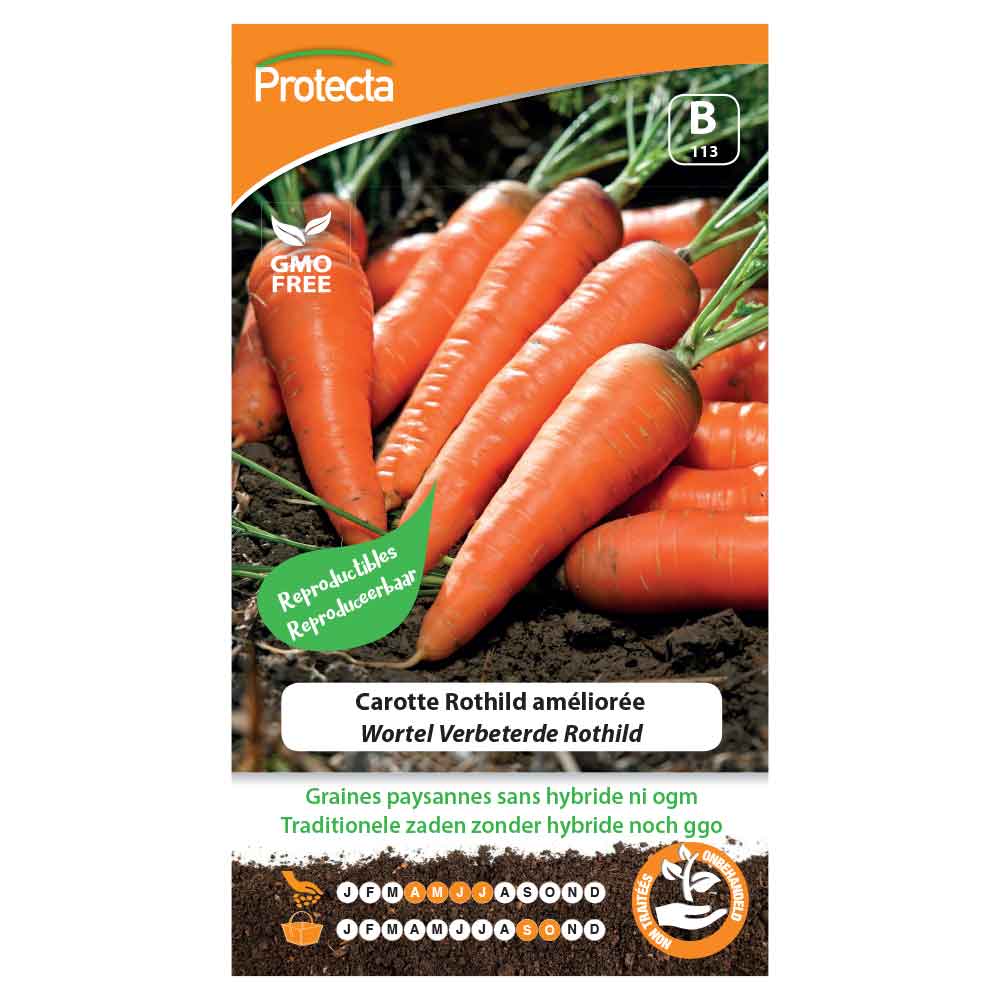Pour une consommation d'automne. Se conserve en hiver. Semis:d'Avril à Juillet, en place en pleine terre, en lignes distantes de 20 cm. Eclaircir à deux reprises à 10 jours d’intervalle, dès que les plants ont trois feuilles (une carotte tous les 5 cm). Binages et arrosages fréquents pendant les chaleurs. Ou d'Octobre à Novembre Récolte:de Septembre à Novembre Conseils:les carottes aiment la proximité des oignons, échalotes ou poireaux qui ont une action protectrice contre les insectes nuisibles.