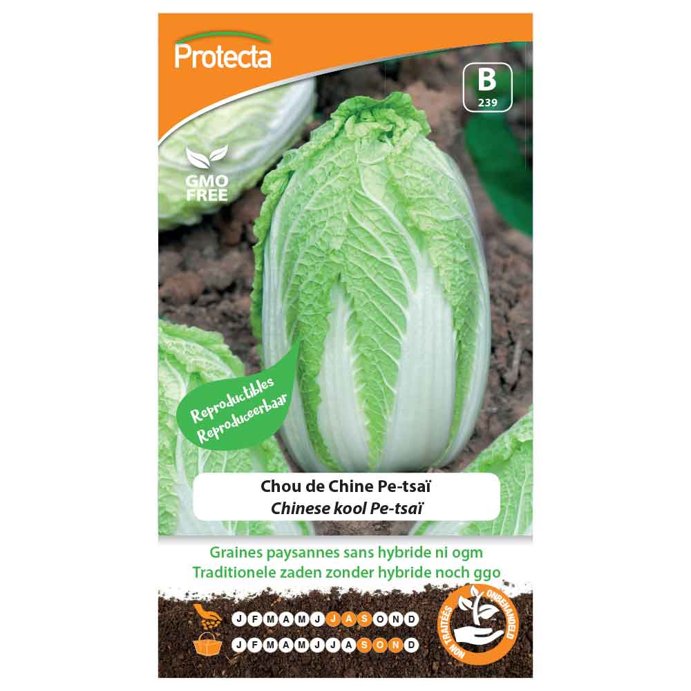 Ce chou originaire de Chine produit de belles pommes enveloppées de côtes vert brillant. Sa saveur délicate, moins forte que celle du chou classique, est très appréciée. Semis:de juillet à Septembre, semis très clair à la volée en pépinière. Éclaircir si besoin. Quand les plants sont assez forts, mettre en place à 50 cm d’écartement en tous sens, sans trop enterrer. Arrosages et binages fréquents. Récolte:Dès septembre, environ 3 mois après la date du semis. Conseils:cultiver à distance des autres choux du jardin mais s'accorde avec les autres légumes du jardin