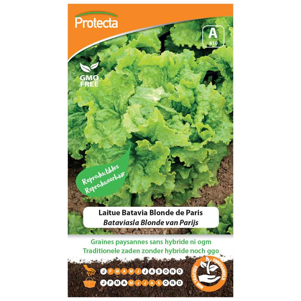 La batavia de Paris est toujours appréciée pour sa bonne résistance à la montaison Semis:de Février à Juin, en pépinière pour repiquage dès que les plants sont assez forts, ou directement en pleine terre. Dans ce cas, éclaircir en plusieurs fois pour isoler les plantes à 30 cm. Arrosages fréquents pendant les chaleurs. Récolte:de Mai à Septembre. Conseils:la laitue risque moins la montée à graine lorsqu'elle est semée en même temps que les radis.