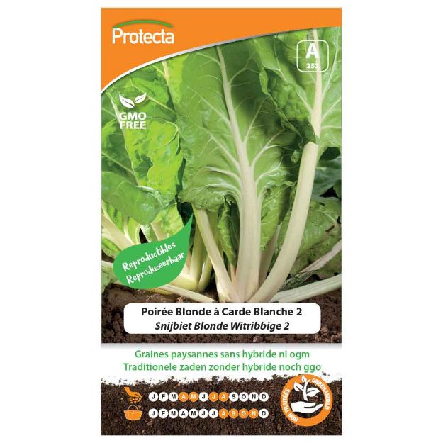 La poirée est communément appelée Blette. Remarquable par la largeur de ses côtes bien blanches. Elle est plus productive que la variété à feuilles vertes. Selon les habitudes, les côtes et les feuilles seront consommées. Semis:Avril à Mai, en place, en bon terrain bien fumé et en rayons distants de 40 cm. Éclaircir les plants à 40 cm. Arroser copieusement pendant les chaleurs. Ou Juillet à Août, de la même manière. Récolte:à partir de la fin de l'été. Ou d'Octobre à Novembre. Conseils:la poirée en compagnie de l'oignon donne une meilleure production;