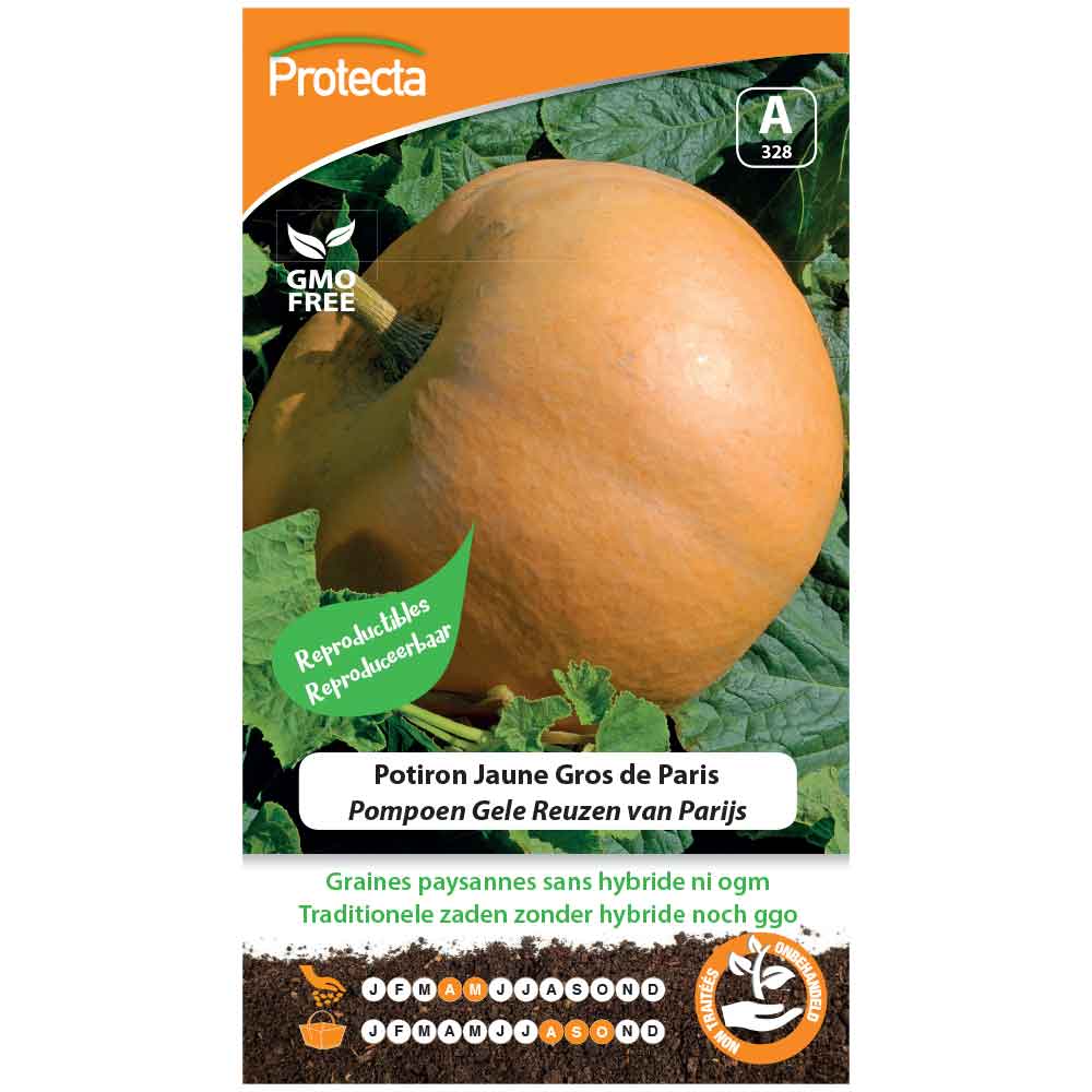 Variété aux très gros fruits ronds à la chair jaune et sucrée. Semis:en avril, à l'intérieur à température ambiante. Plantez-les pointe vers le bas dans du terreau à 1 cm de profondeur. Dès la mi-mai, les plantules sont repiquées dans un sol riche à 1 mètre d'intervalle. Dès la fin mai, le semis peut s'effectuer directement en pleine terre. Récolte: d'Août à Octobre Conseils:le potiron aime la compagnie du radis car il éloigne les insectes et autres pucerons.