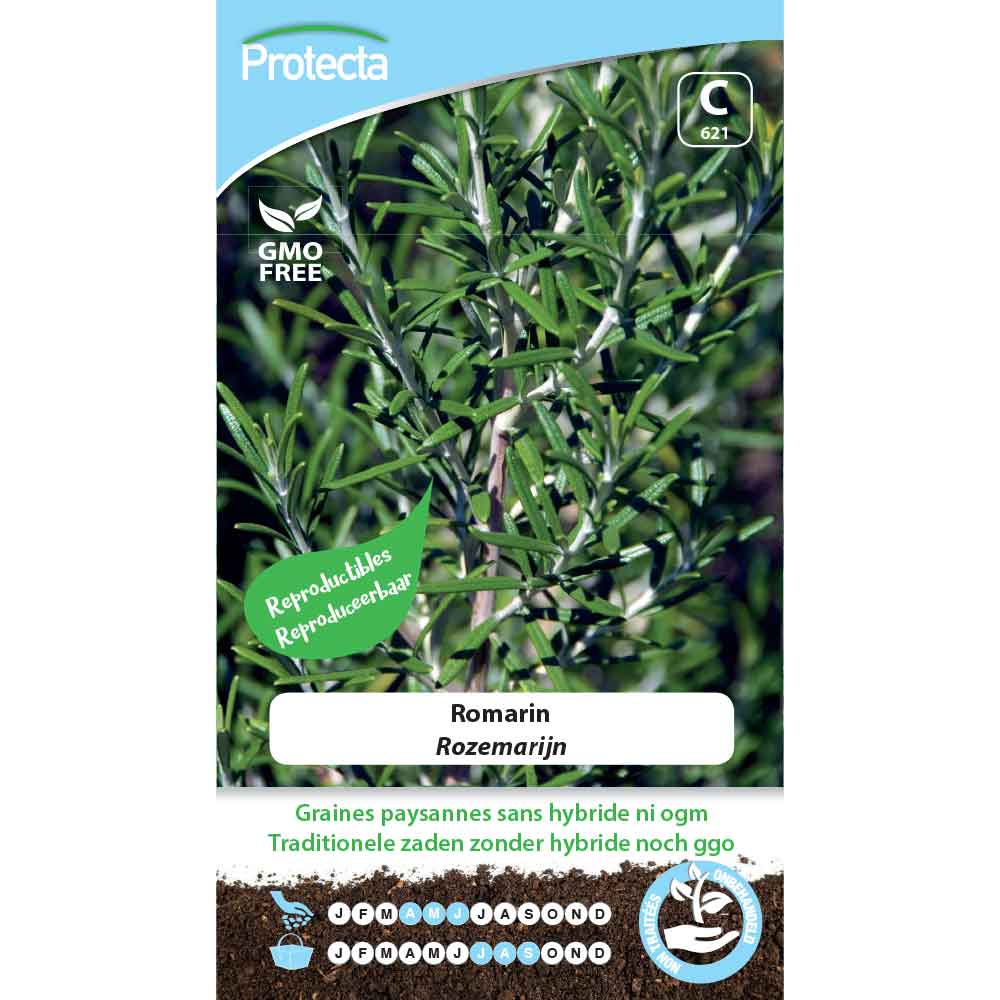 les feuilles sont employées fraiches ou sèches comme condiment de cuisine ou parfois en infusion. Semis:d'avril à juin, en pépinière bien exposée. Mettre en place à l'automne ou au printemps suivant, en exposant les plants de 80 cm. Récolte:récoltez l'extrémité des tiges l'année suivant le semis, de juillet à septembre. Conseils:le romarin éloigne les pucerons des salades