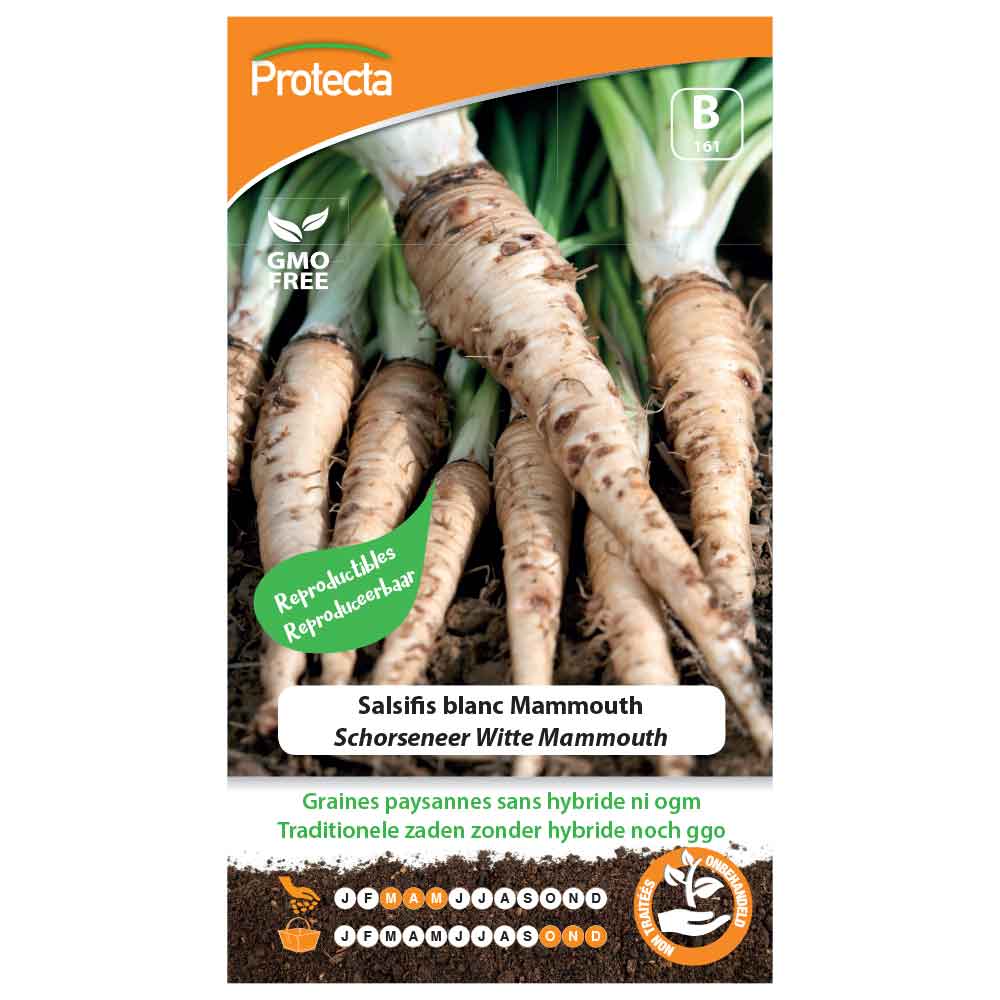Variété à longue et grosse racine blanche d´excellente qualité. Feuilles épaisses et étroites vert bleuté. Les racines se consomment cuites, frites, en salade, à la crème...Les jeunes feuilles sont excellentes fraîches en salade. Semis:de Mars à Mai, en pleine terre, sol meuble et profond, en lignes distantes de 20-25 cm. Tenir le sol frais jusqu´à la levée. Recouvrir les graines de 2-3 cm de terre puis tasser. Eclaircir lorsque les plants ont quelques feuilles, laisser 8-10 cm entre les plants. Supprimer les tiges florales dès leur apparition. Récolte:à partir de 7 à 8 mois après le semis. Conseils:le salsifis se complait aux côtés de la carotte, de l'oignon, du panais et du poireau