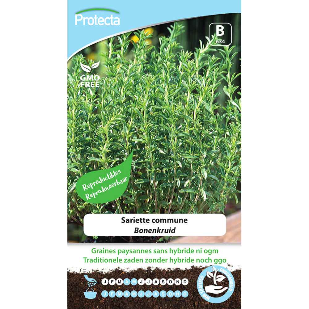 Herbe potagère pour agrémenter de nombreux légumes à cosses, mais également salades, crudités, sauces, viandes. Elle libère tout son goût et son arôme à la cuisson. Facile à cultiver, aussi en pots sur un balcon ou terrasse. Semis:d'Avril à Mai, en pépinière bien exposée. Mettre les plants en place avant l’hiver ou au printemps suivant. Choisir un sol léger, bien aéré, plutôt pauvre et bien ensoleillé. Le thym se cultive très bien en pot. Récolte:toute l’année. Couper des branches entières (ne pas tailler en boule). Conseils:éloigne les pucerons noirs des haricots.