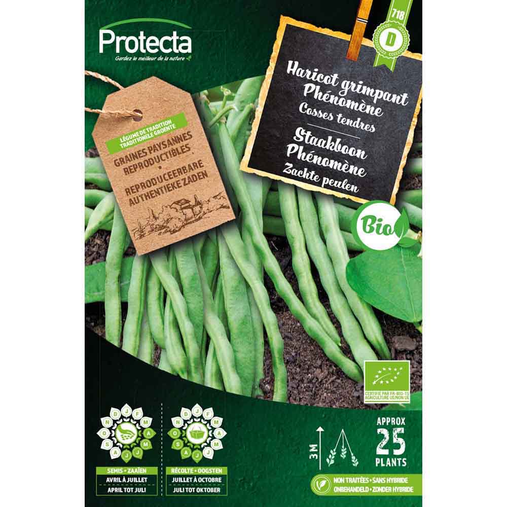 Variété de mangetout grimpant formant de larges gousses vertes et plates, longues de 25 cm. Elle offre un excellent rendement et donne tout son potentiel gustatif lorsque les cosses atteignent 12 à 15 cm de longueur. Lors d'une récolte plus tardive, Phénomène laissera apprécier ses beaux grains blancs.