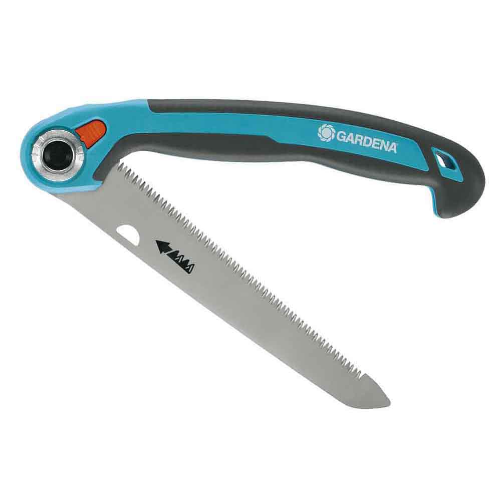 La scie à élaguer repliable 200P GARDENA est idéale pour tous les travaux de coupe au jardin. La lame de coupe en acier trempé est repliable avec un système de blocage en 3 positions ouverte ou fermée. La lame est incurvée et possède une denture de précision tranchante et un affûtage à triple angle de coupe par dent pour une coupe facile et sans effort. La poignée est ergonomique et est recouverte d’un revêtement antidérapant pour éviter le glissement de la main. Longueur de la lame : 215 mm. Œillet de suspension. Sciage en traction. Garantie 25 ans.