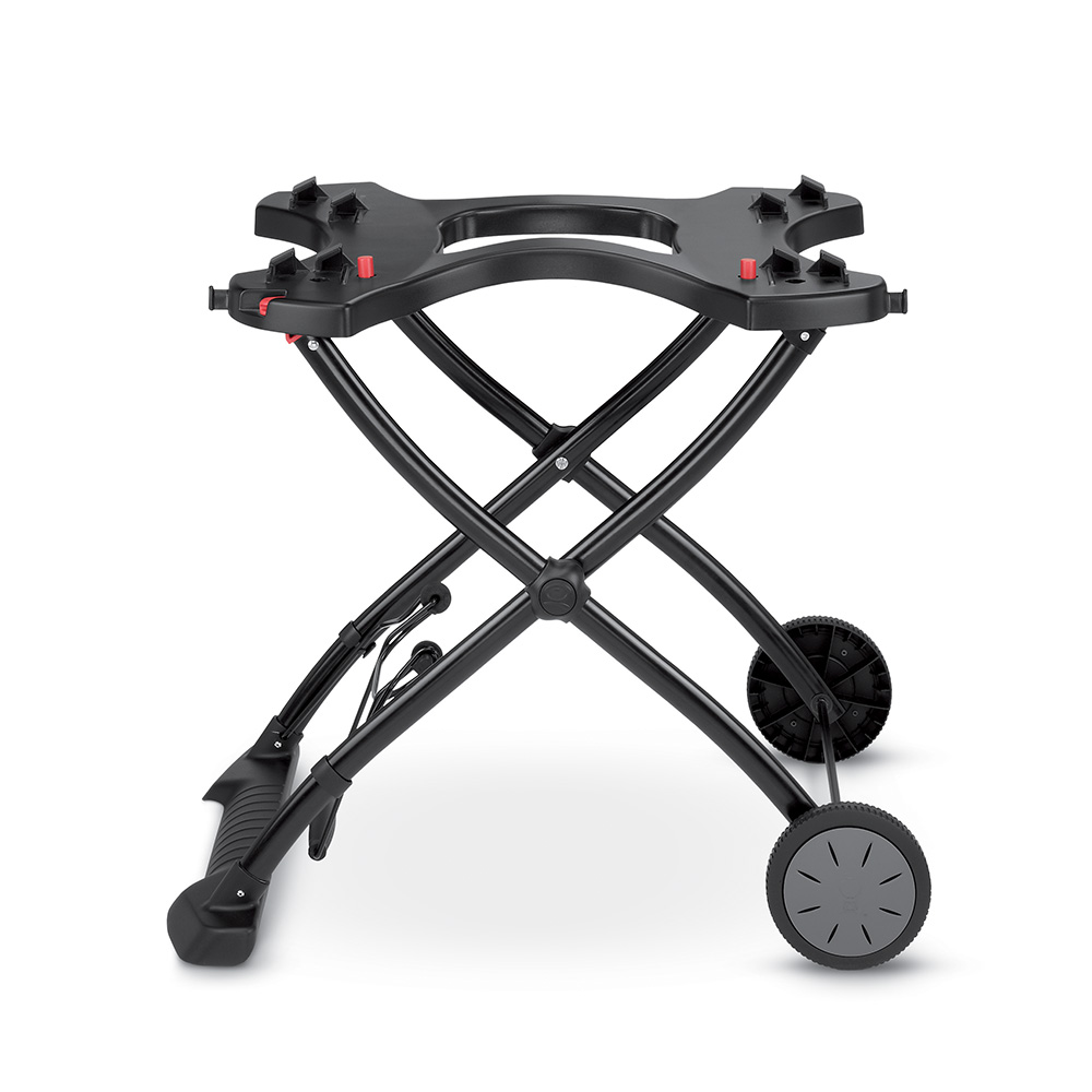 Ne limitez pas vos envies de barbecue à votre terrasse. Le chariot portable est conçu pour qu’il soit aussi facile de déplacer un barbecue que de retourner un steak. Positionnez votre barbecue Weber® Q sur le chariot et utilisez-le comme pied fixe pour que votre appareil soit à la hauteur optimale. Lorsque vous voulez emporter vos grillades avec vous, repliez-le et faites-le rouler jusqu’à la voiture, ou directement jusqu’à la plage. Il est de votre responsabilité de vérifier la réglementation en vigueur pour l'utilisation d'un barbecue en plein nature, de vérifier les accords de copropriété ou de municipalité et de respecter la législation locale.