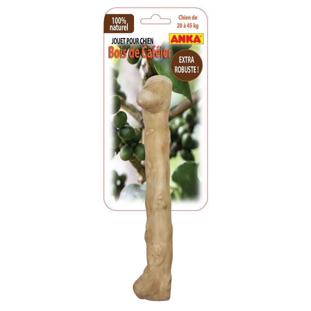 Les chiens adorent jouer avec des bouts de bois ... mais l’écorce et les bois “cassants” présents dans la nature peuvent être dangereux pour les chiens. Le bois de caféier est des bois les plus denses et résistants au monde ! Il ne se casse pas et ne provoque pas d’esquilles ou de morceaux dangereux lors de la mastication. Dépourvu de son écorce, tous les angles saillants ont été polis pour ne pas fragiliser la dentition des chiens.