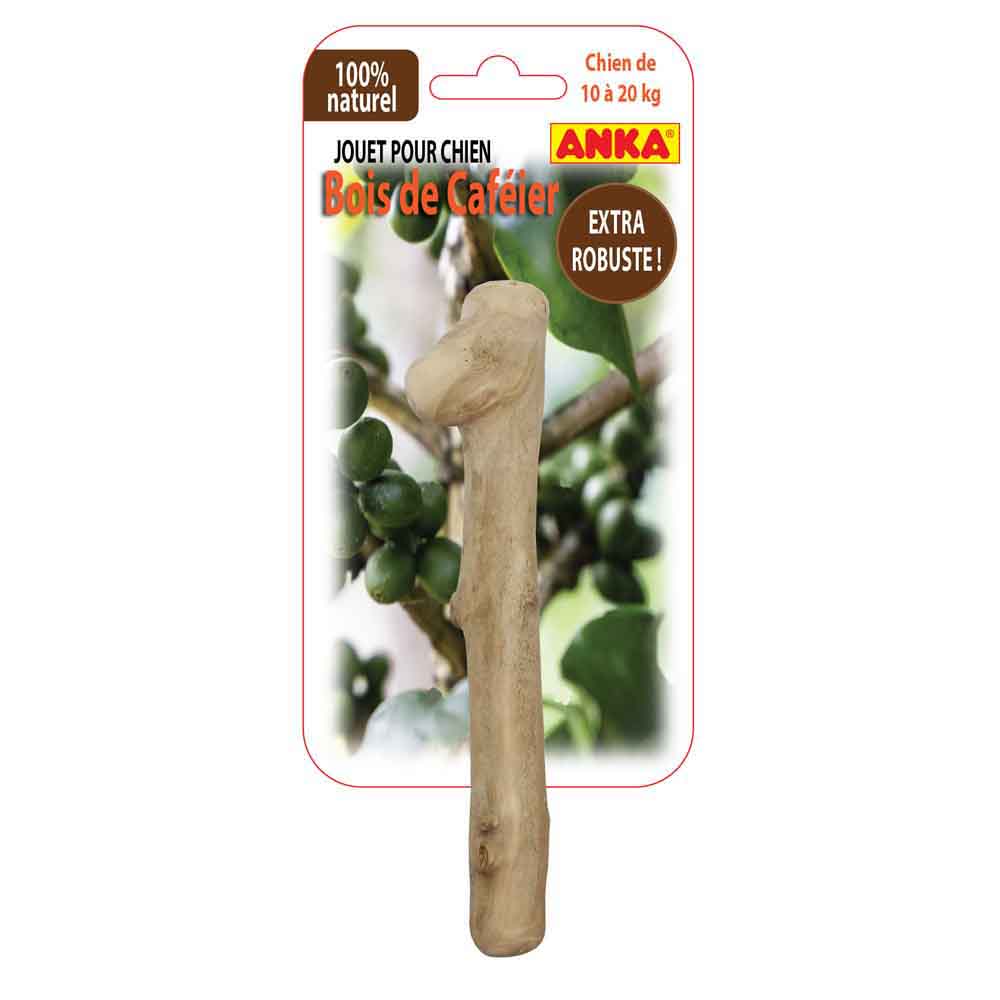 Les chiens adorent jouer avec des bouts de bois ... mais l’écorce et les bois “cassants” présents dans la nature peuvent être dangereux pour les chiens. Le bois de caféier est des bois les plus denses et résistants au monde ! Il ne se casse pas et ne provoque pas d’esquilles ou de morceaux dangereux lors de la mastication. Dépourvu de son écorce, tous les angles saillants ont été polis pour ne pas fragiliser la dentition des chiens.