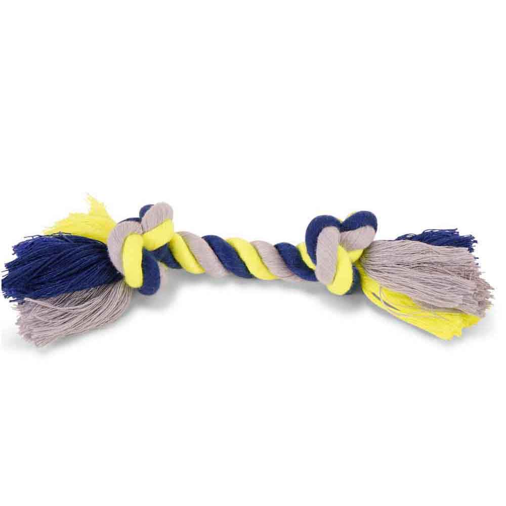 Corde coton 2 noeuds bleu-jaune 50g 20cm