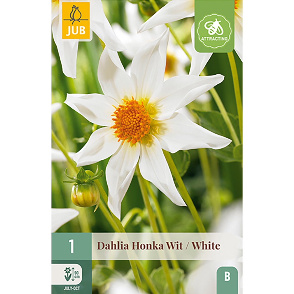 Ce dahlia à fleurs d'orchidées 'Honka Blanc' est une floraison estivale gratifiante qui vous procurera des mois de plaisir. Avec ses belles feuilles blanches, ce dahlia est un ajout spécial à votre bordure. Le dahlia 'Honka Blanc' fleurit tout l'été de juillet à dès les premières gelées nocturnes, le Dahlia 'Honka Blanc' atteint environ 90 cm. Il est parfois nécessaire de soutenir les tiges florales.