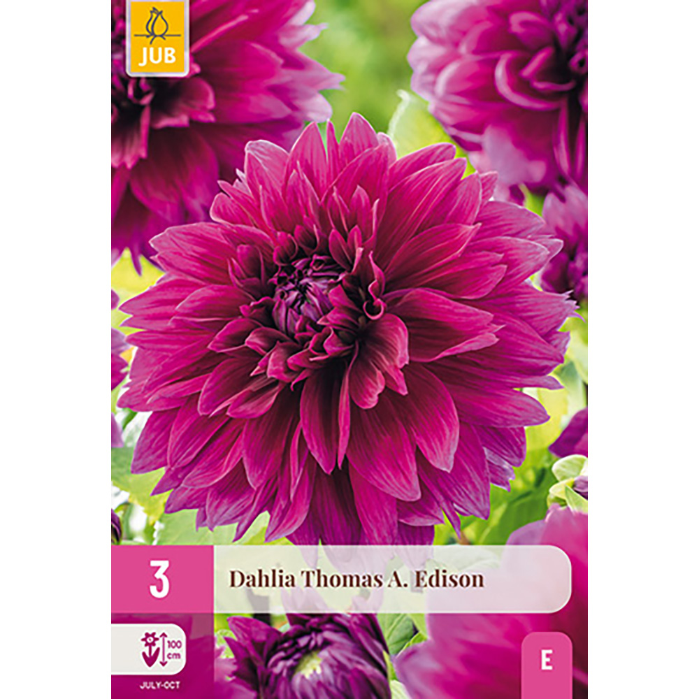Le dahlia décoratif à grandes fleurs 'Thomas A. Edison' fleurit en été et vous procurera des mois de plaisir. Le dahlia 'Thomas A. Edison' fleurit tout l'été de juillet jusqu'aux premières gelées. Le dahlia 'Thomas A. Edison' atteint environ 100 cm de haut. Parfois, il est nécessaire de soutenir les tiges florales.