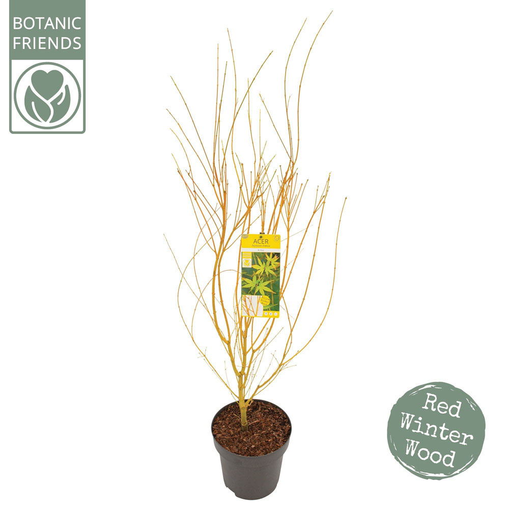 Acer palm. 'Bi hoo'vert-jaune au printemps avec des teintes roséesfeuillage d’automne jaune-rouge