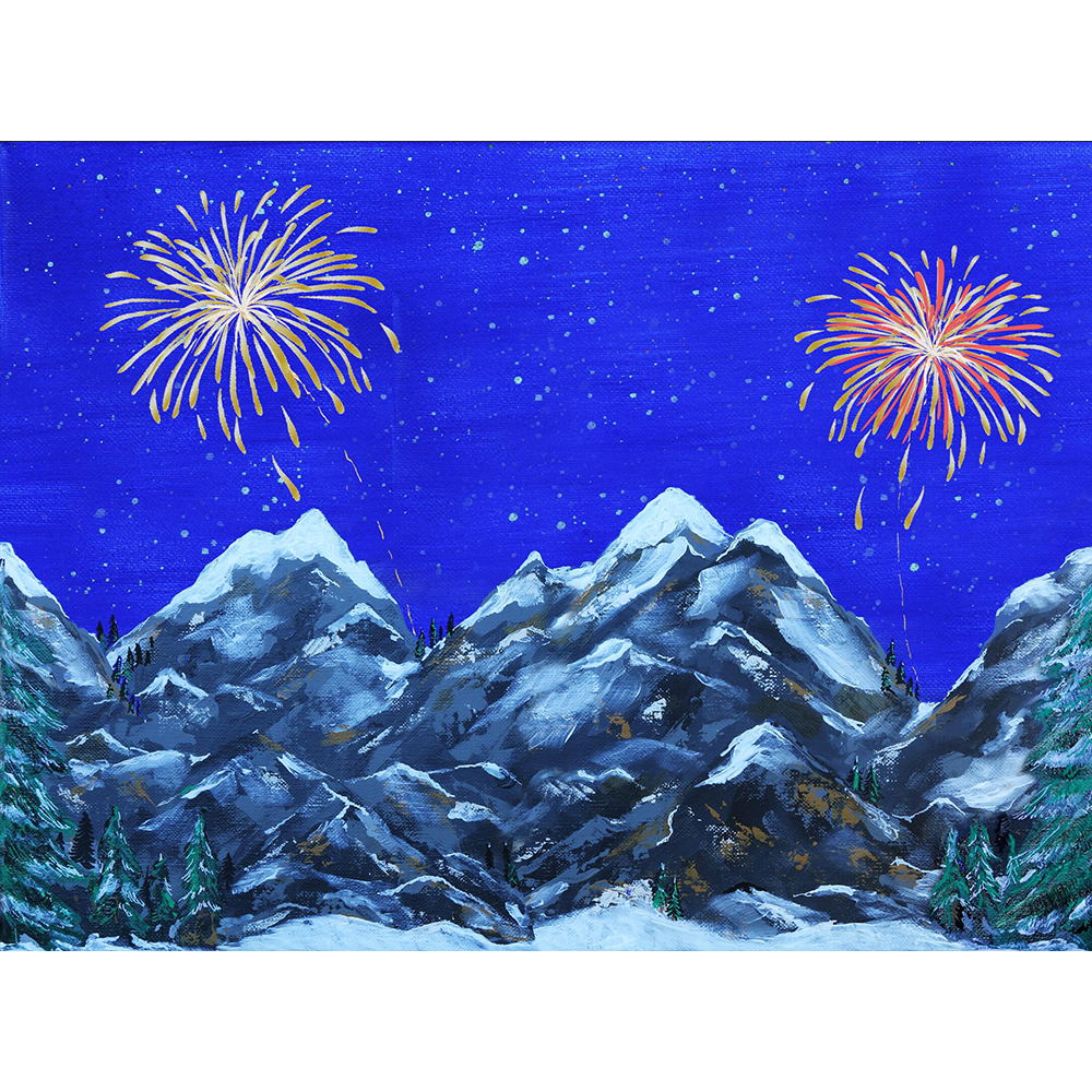 Ce fond de toile rétroéclairé présente un effet de feu d'artifice, deux flèches de feu d'artifice étant tirées entre les montagnes. Le ciel est illuminé par des étoiles scintillantes. La toile est équipée d'un interrupteur pour contrôler les lumières. Il s'agit d'un arrière-plan idéal pour créer une belle atmosphère hivernale dans un village de Noël. La taille de ce fond est de 76 par 56 centimètres. Les toiles d'arrière-plan peuvent être reliées les unes aux autres, ce qui permet de créer un arrière-plan plus grand. Utilisez-le comme arrière-plan ou comme peinture. S'utilise avec 3 piles AA (non incluses).