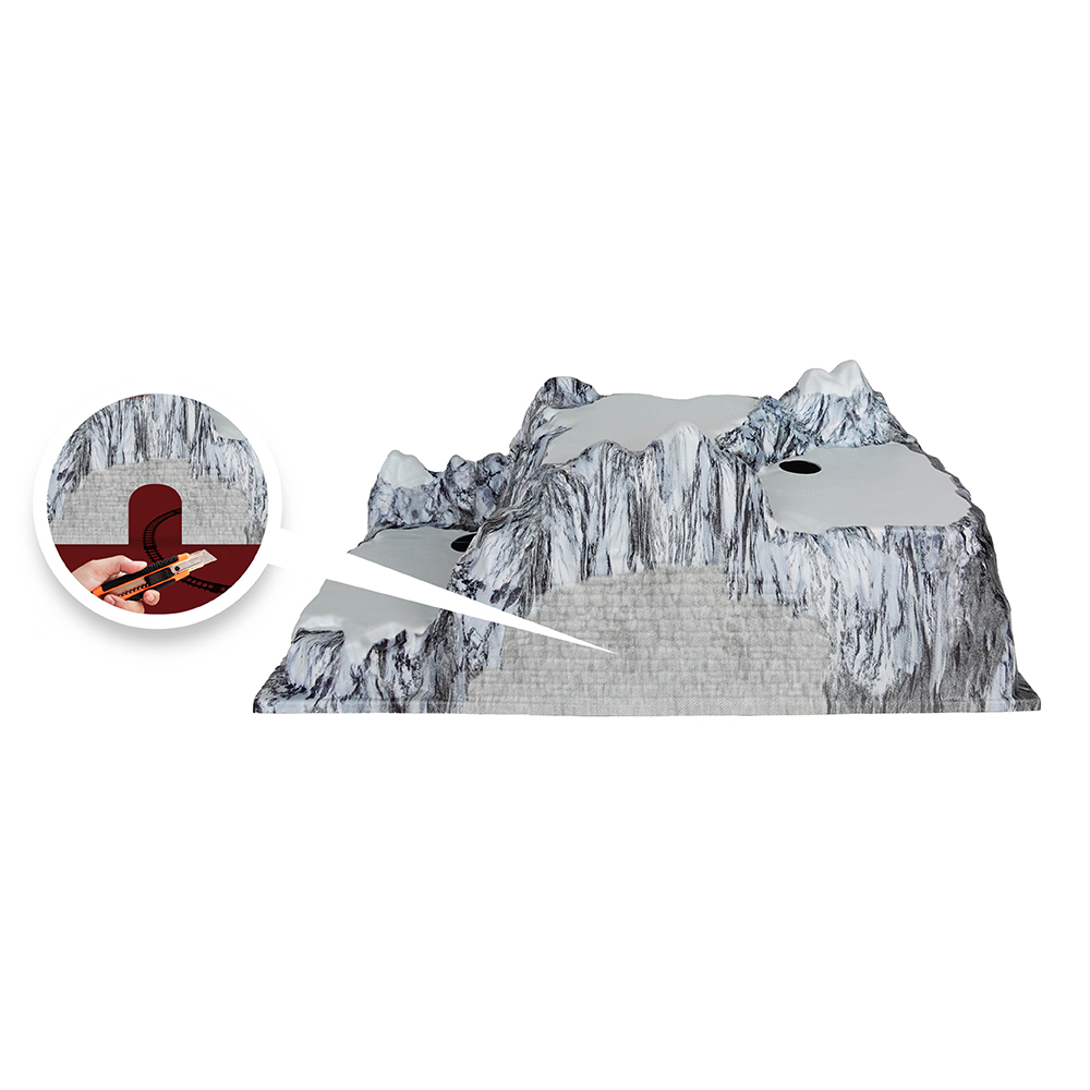 Base Village de Noël Tunnel de train est une base idéale pour un village de Noël ou un autre village miniature. La hauteur de la base est de 29 cm, sa longueur de 78 cm et sa largeur de 38 cm. La base comporte 2 surfaces dans lesquelles vous pouvez découper un tunnel. Un train peut circuler dans les deux tunnels. Le paysage de montagne est imprimé en plusieurs couleurs et en relief. La maquette peut accueillir plusieurs maisons et quelques accessoires. La montagne présente plusieurs surfaces à différentes hauteurs et des pics saillants. La base est fabriquée en plastique recyclé de haute qualité et peut être recyclée après utilisation. Le matériau peut être transformé. Le collage, le perçage ou le sciage ne posent aucun problème. Peut être combiné avec des maisons de Noël et d'autres accessoires de village de Noël de différentes marques telles que Lemax. Convient également à la réalisation de villages miniatures sur d'autres thèmes que Noël.