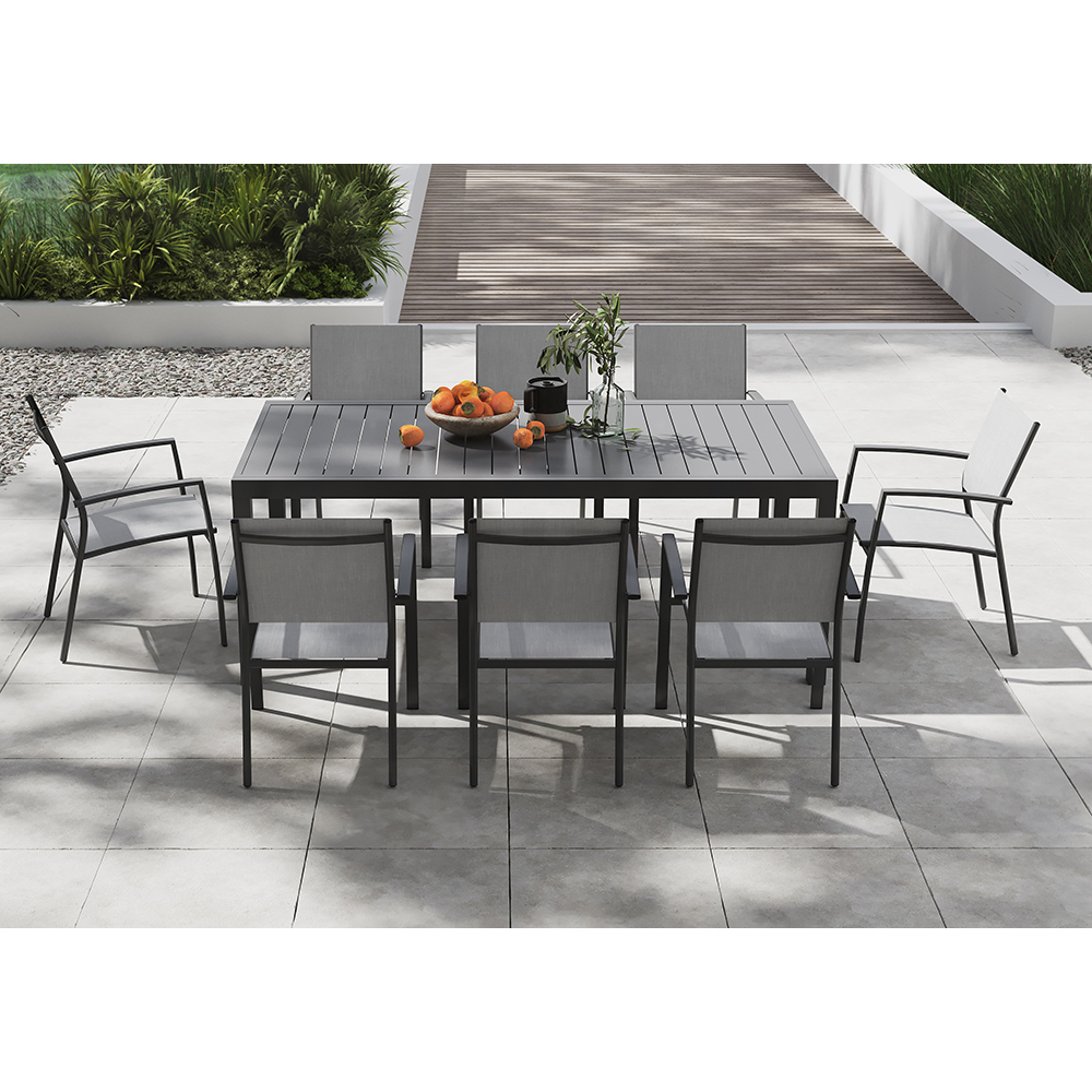 Box de 12 parasols droits à ouverture et inclinaison par une NEW manivelle. Structure aluminium. Toile polyester teint masse 170 gr, 100% recyclé.