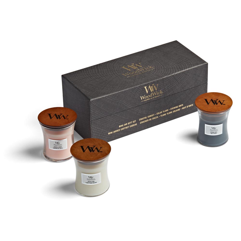 Ce coffret contient 3 mini-bougies aux senteurs boisées différentes. Avec les coffrets cadeaux de luxe, offrir une bougie WoodWick est encore plus amusant !