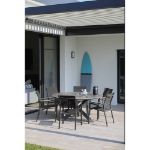 Fauteuil GAMES empilable aluminium accoudoir heat chêne, toile TPEP noire, châssis graphite. Léger, pratique à utiliser, à transporter et à ranger. Mobilier d'extérieur qui convient à un usage intérieur. Structure aluminium, peinture époxy. Finition desa ccoudoirs "imitation bois chêne". Assise et dossier en TPEP. Prêt à l'usage; fabrication: Chine. Garantie 2 ans. L/H/P (cm) : 56 x 87 x 59, Hauteur d’assise (cm) : 45, Largeur d’assise (cm) : 37, Hauteur sol/accoudoirs (cm) : 64. L'aluminium est un métal remarquable pour ses qualités de légèreté, résistance à l'oxydation. Il supporte les aléas climatiques. Il est néanmoins fortement conseillé d'utiliser une housse de protection conçue pour les assises de jardin, alors que le mobilier reste dehors durant de longs mois. Une housse de protection permet de réduire l'impact des agressions extérieures (végétation, animaux, pollution, etc…). Pour nettoyer l’aluminium, veillez à ne pas utiliser la partie abrasive de l’éponge, les marques seraient définitives. Un simple nettoyage régulier à l’eau tiède et au savon suffira à préserver le mobilier aluminium. La toile tendue TPEP est une matière facile d’entretien. Il suffit d’utiliser simplement de l’eau et du savon pour que la toile retrouve tout son éclat. La visserie en acier du mobilier de jardin nécessite un entretien régulier afin de prévenir l’apparition de la corrosion. Il convient simplement d’appliquer un aérosol antirouille en début et fin de saison.