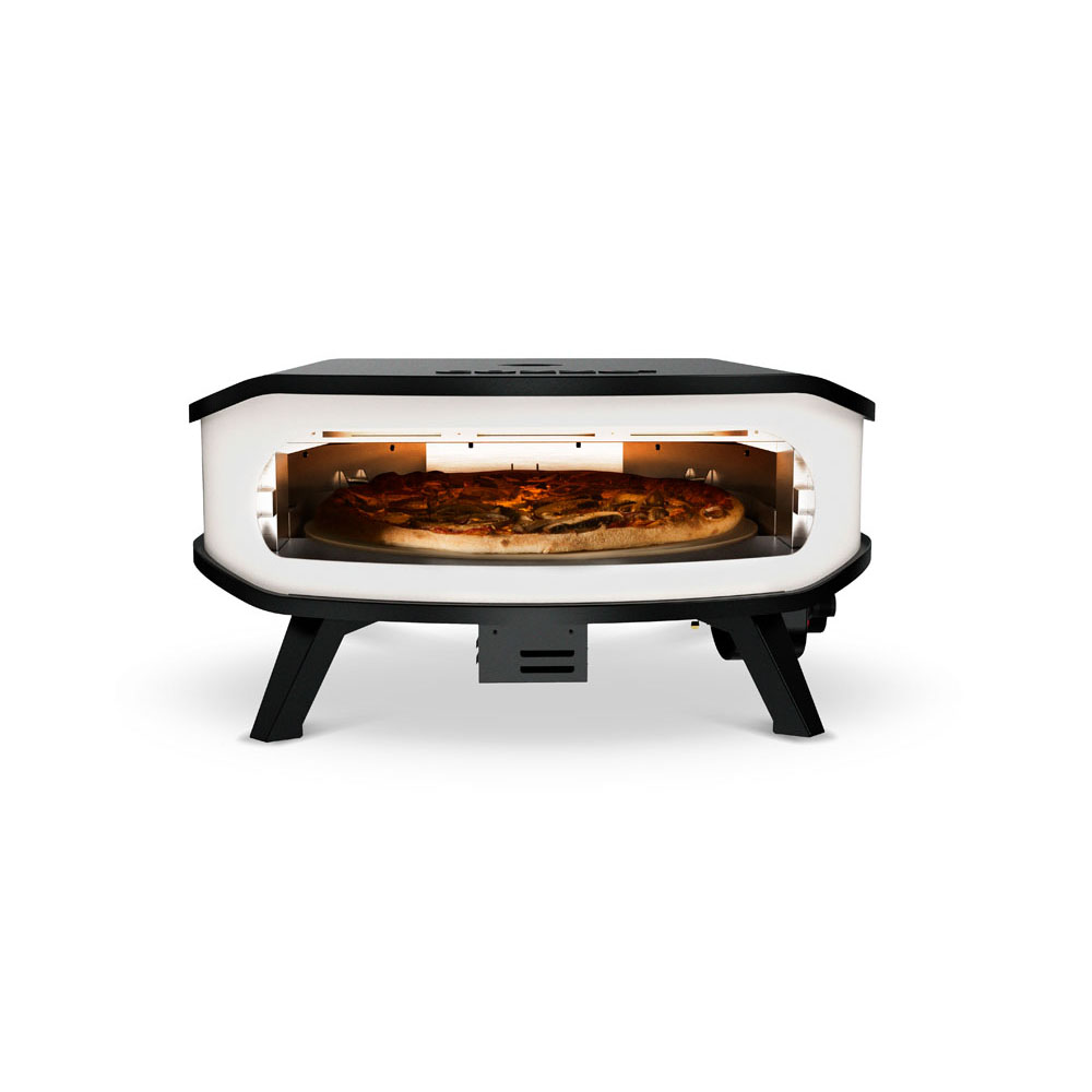 Notre four à pizza Cozze est idéal pour la cuisson de pizzas en plein air. Avec sa large ouverture, sa pierre de cuisson et ses brûleurs en U qui suivent la pierre, le four est simple d'utilisation et peut accueillir sans problème de grandes pizzas jusqu'à Ø42,5 cm. Il est équipé d'un thermomètre pour que vous puissiez facilement contrôler la température. Le four est prêt à l'emploi environ 20 minutes après l'avoir allumé, après quoi vous pouvez rapidement cuire de délicieuses pizzas pour de grandes fêtes ou simplement pour la famille.