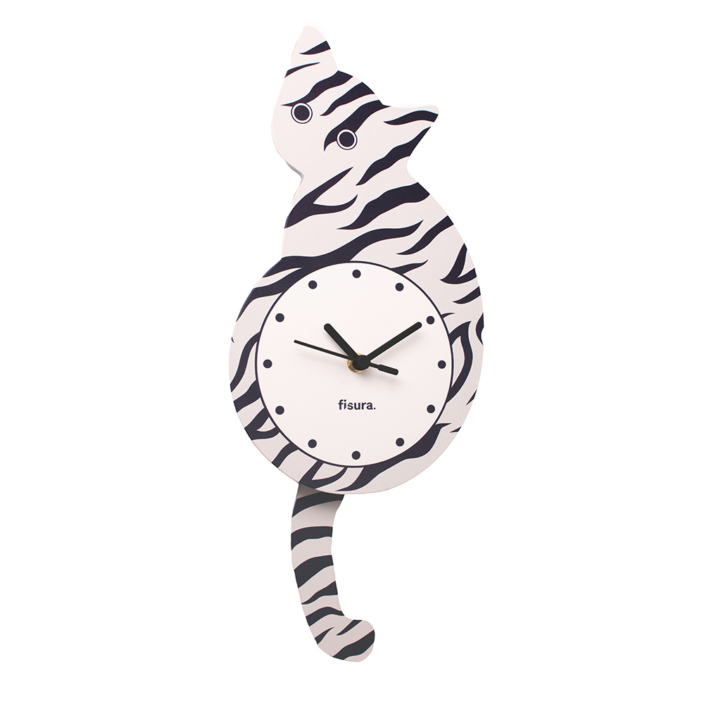 Horloge chat tigré au design ludique et chaleureux, idéale pour apporter une touche fun à votre intérieur.