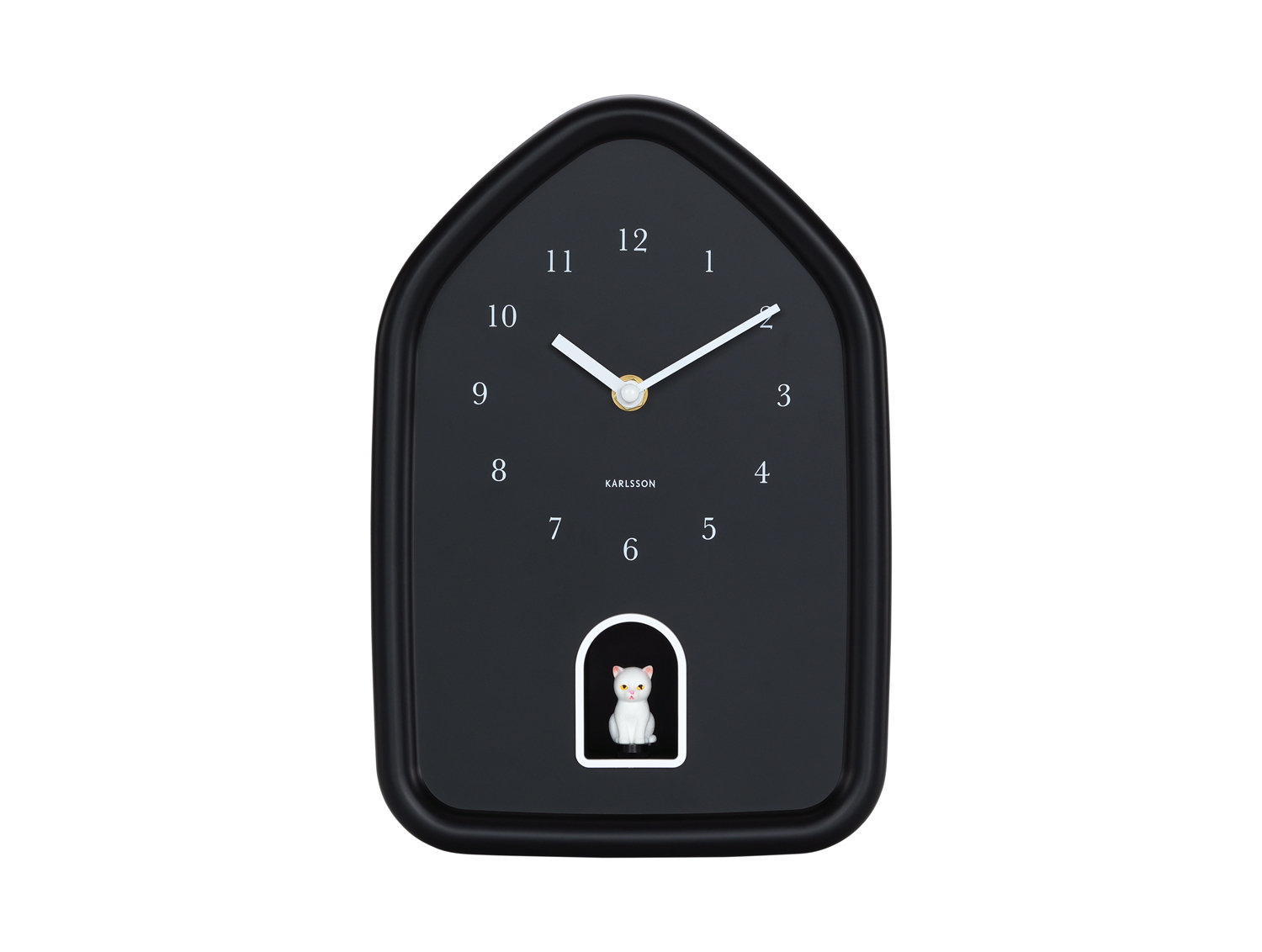 L'horloge murale Modern Kitty de Karlsson allie simplicité et touche ludique. Toutes les heures, un adorable chaton apparaît en miaulant doucement. Son design en forme de maison et ses couleurs mates lui confèrent un style chaleureux et moderne. Parfaite pour les amoureux des chats et les amateurs de designs élégants et ludiques. Couleur Noir