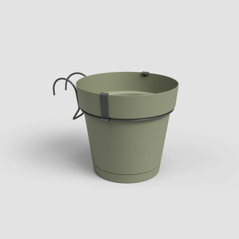 KIT BALCON POT CAPRI RÉS.EAU 20CM VERT CENDRÉ