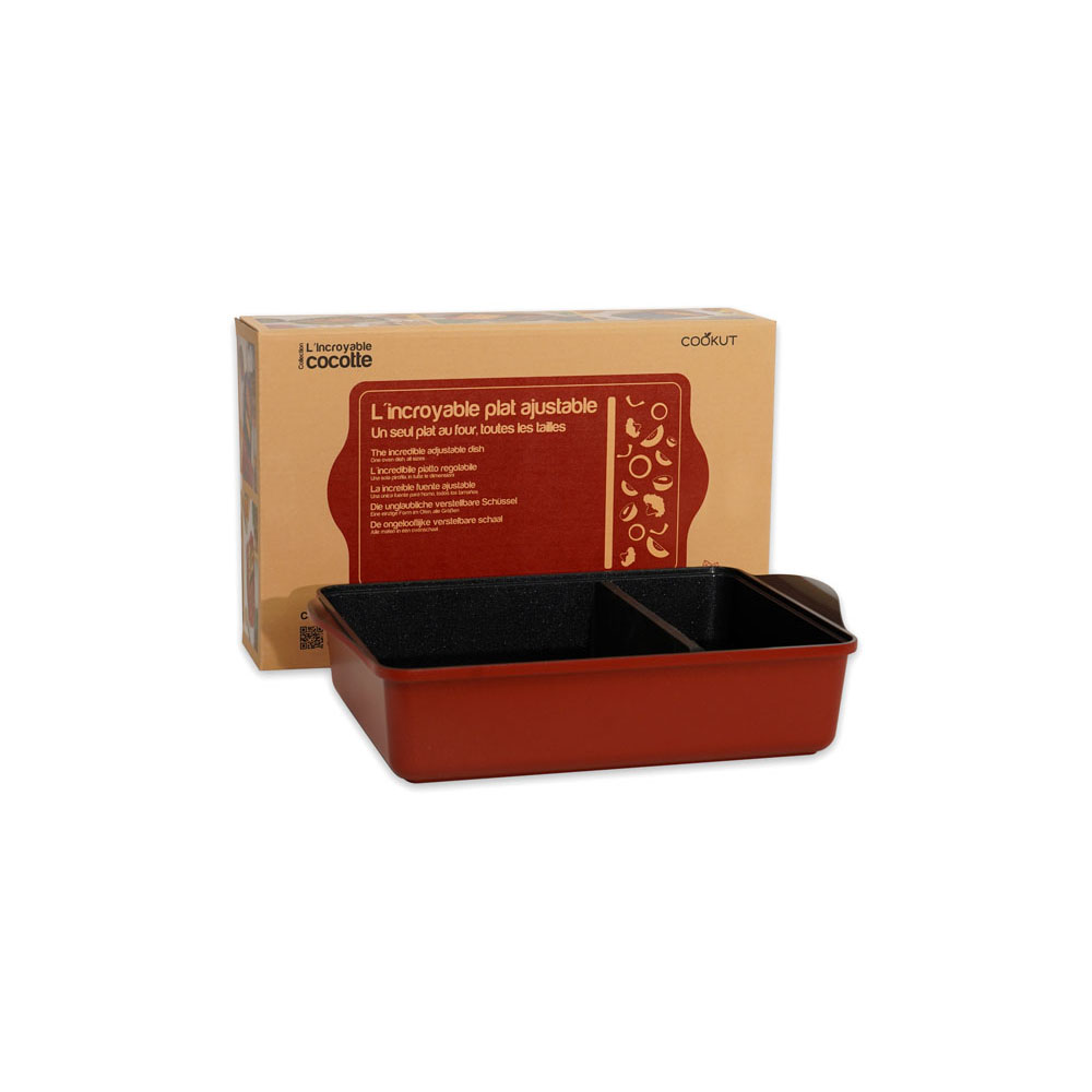 Ce plat unique remplace tous les autres plats : grâce à son séparateur breveté inclus, ajustez facilement la taille de votre plat en fonction de vos envies et du nombre de convives. -Ultra léger