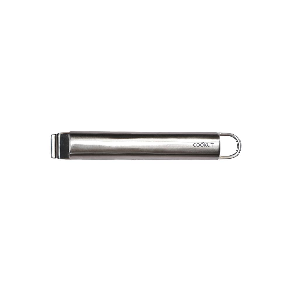 A la fois élégante et inovante. Elle renferme un mécanisme de clipsage invisible. Ce mécanisme, simple et robuste, permet une manipulation facile d'une seule main. Facilement détachable, une seule poignée peut s’adapter à plusieurs ustensiles de la gamme inox, ce qui vous permet un gain de place dans vos tiroirs et placards.