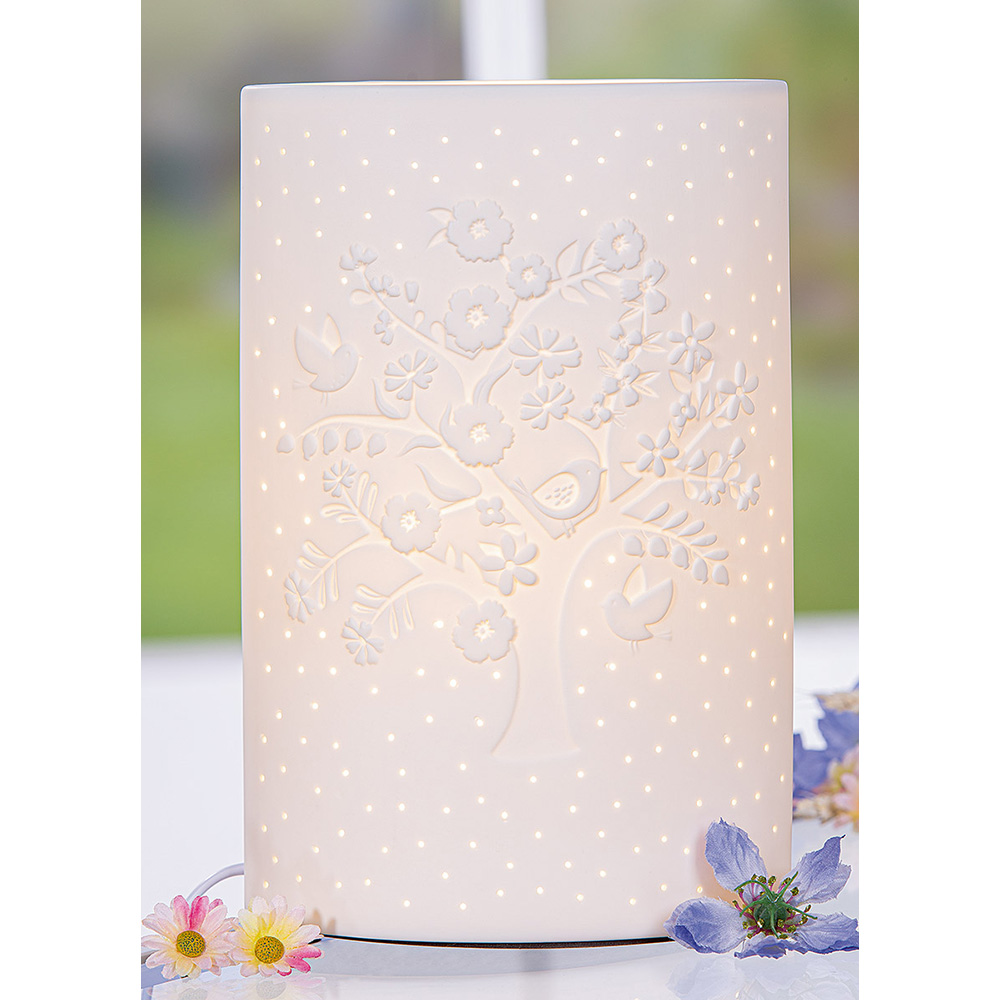 Lampe en porcelaine, blanc, motif oiseau, H.28 cm