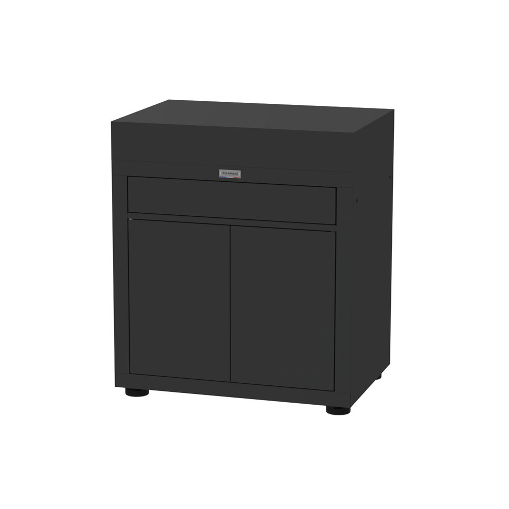 2 portes doublées pour une meilleure tenue, avec système d’ouverture «push-pull» (une simple pression déclenche l’ouverture des portes) Tiroir coulissant avec système d’ouverture «push-pull» (une simple pression déclenche l’ouverture du tiroir) En acier peinture époxy coloris noir Dimensions : L80 P55 H92cm Poids : 43kg