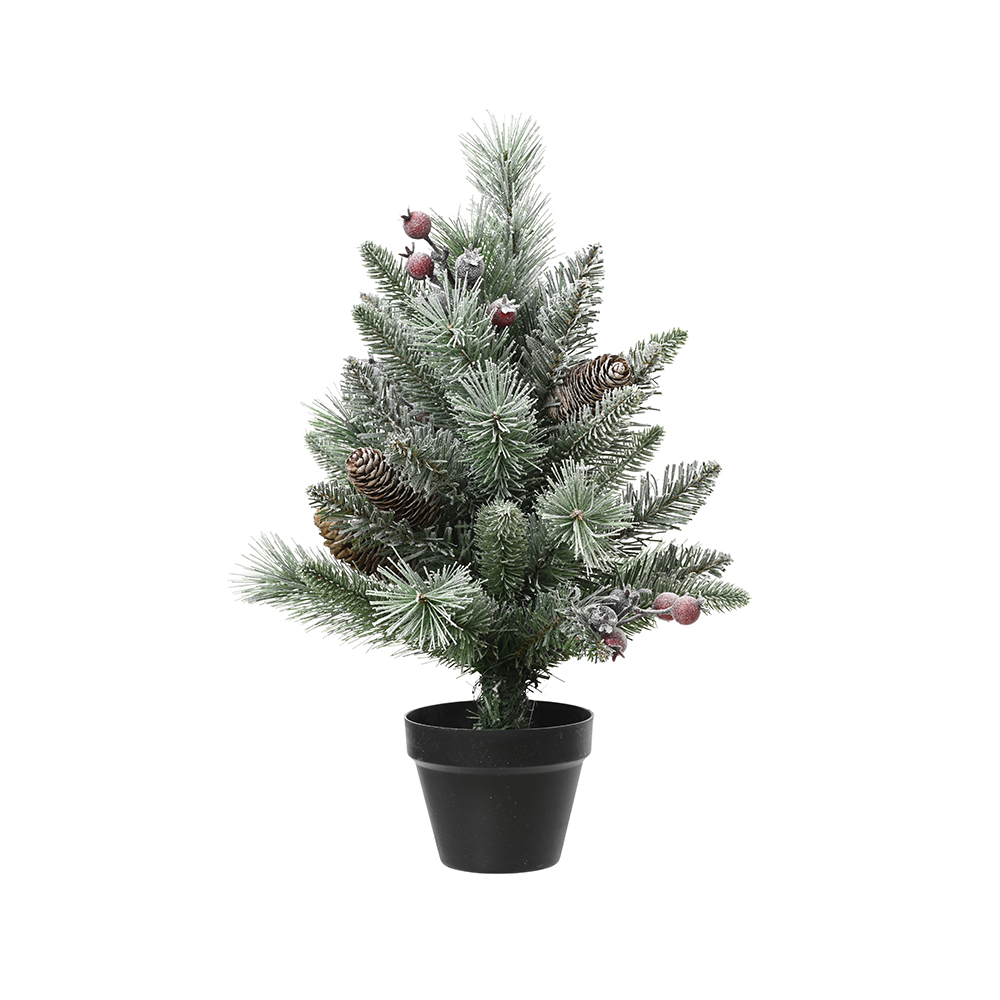 Windham mini-arbre givre 3 grappes baies rouges et 4 pommes pin intérieur H45cm