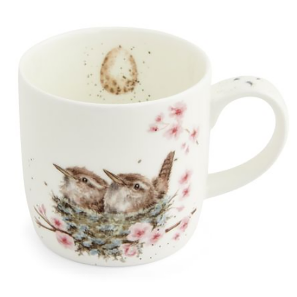 Cette magnifique tasse illustrée « Feather your nest » (Ornez votre nid de troglodyte mignon) en porcelaine fine de Royal Worcester fera un cadeau charmant ou un bel ajout à votre cuisine. Chaque face de la tasse présente une image différente, et une troisième image orne le bord intérieur. Contenance : 0,3 L. Compatible lave-vaisselle et micro-ondes.