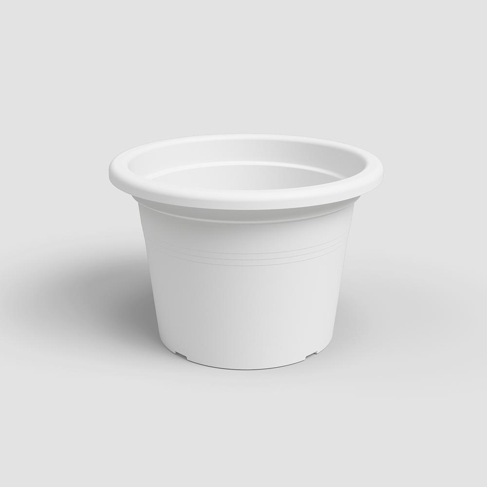 Pot en plastique recyclé, de forme cylindrique, fabriqué en polypropylène, léger, durable, recyclable et réutilisable, avec protection UV, résistant au gel et doté de trous de drainage. Convient aux espaces extérieurs et intérieurs. Peut être complété par une soucoupe ronde, pour une utilisation en intérieur. Fabriqué au Portugal.
