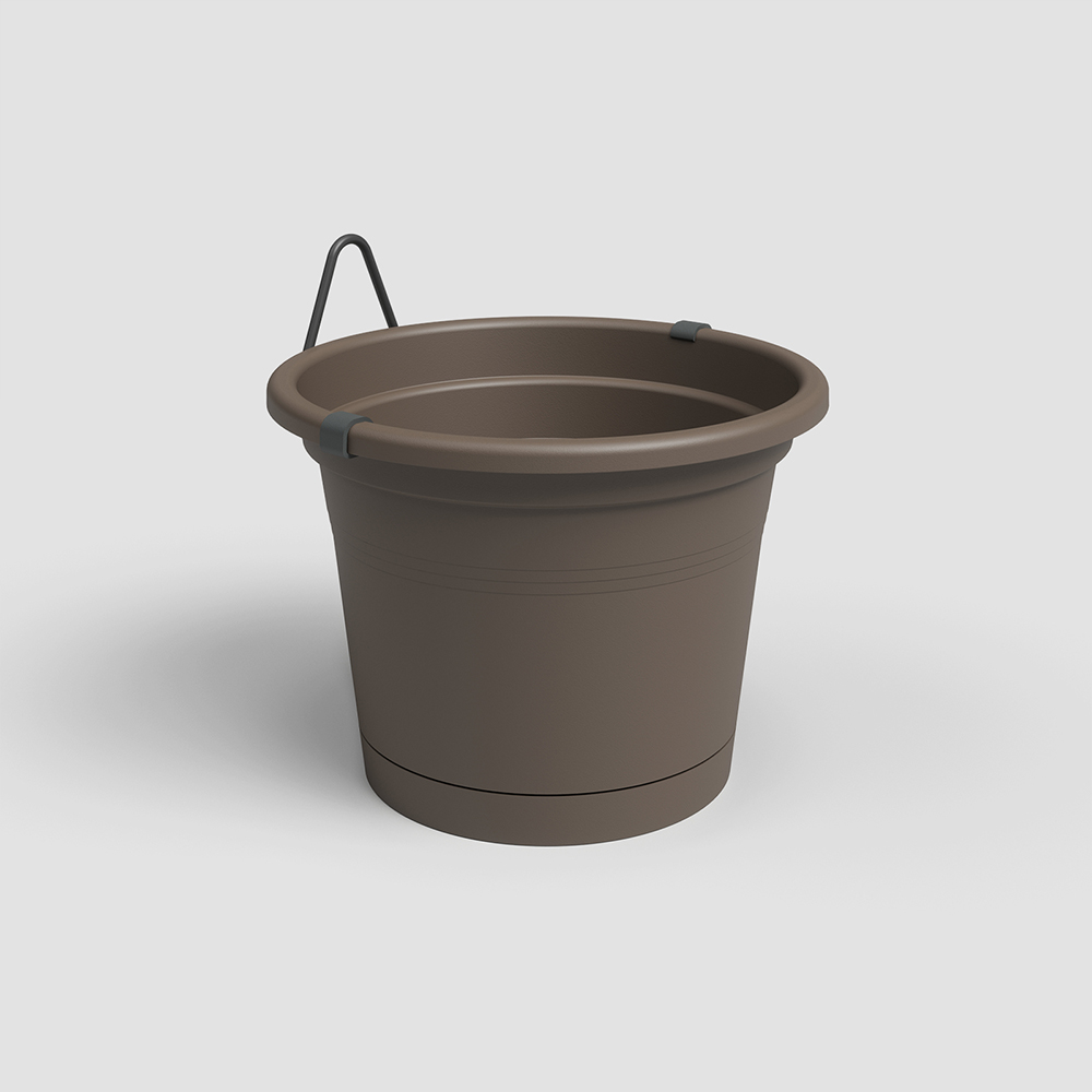Kit de pot en plastique recyclé pour mur, fabriqué en polypropylène, léger, durable, recyclable et réutilisable, avec protection UV, résistant au gel et doté de trous de drainage. Comprend un support en fer pour fixation murale. Convient aux espaces extérieurs et intérieurs. Fabriqué au Portugal.