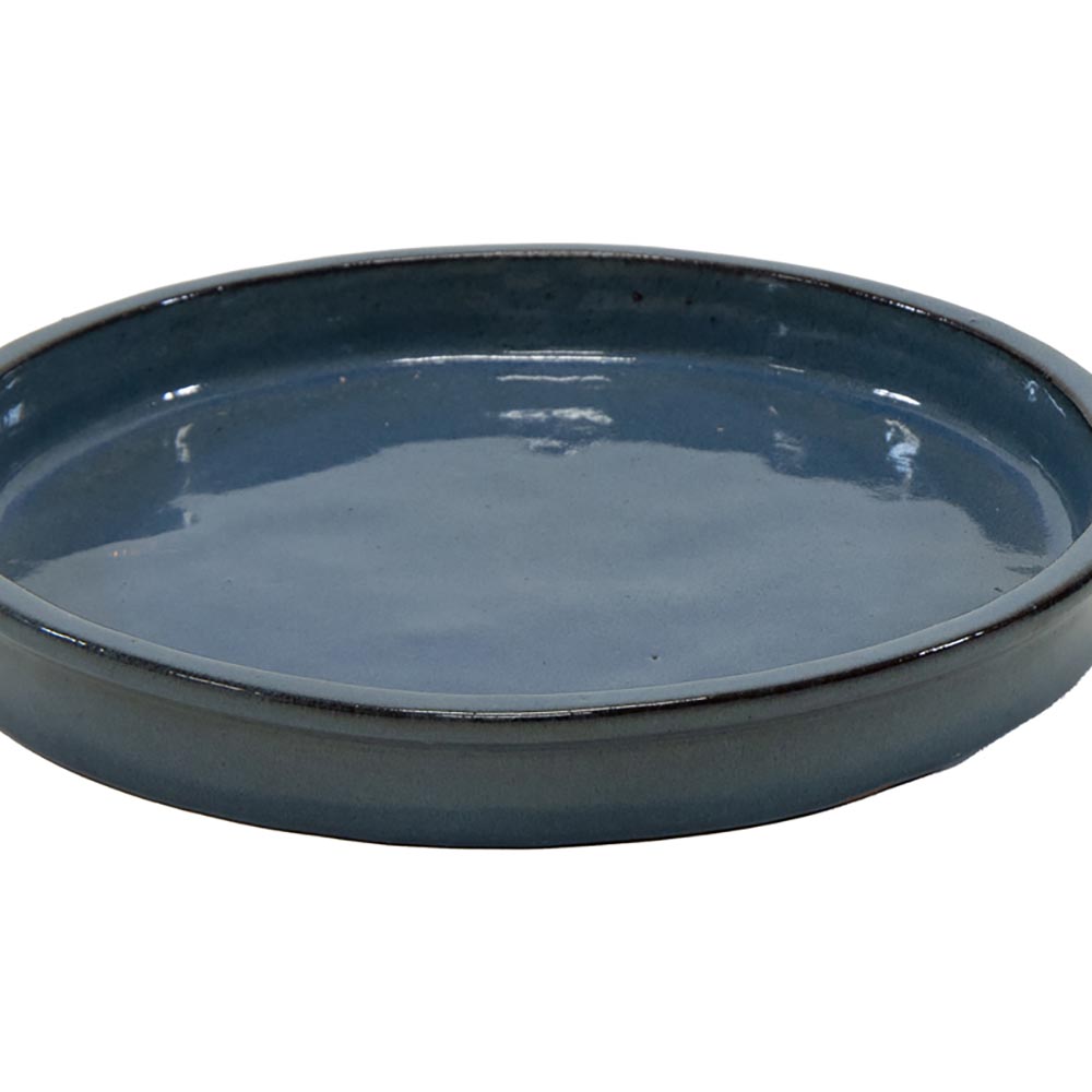 Soucoupe émaillé de couleur "Antic Blue", très résistant Résiste aux variations de température. Soucoupe est d'un diamètre de 54 cm et d'une hauteur de 6,6.cm