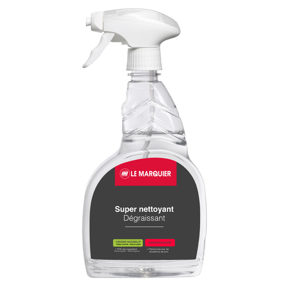 Super nettoyant dégraissant LE MARQUIER - HAUTE EFFICACITE 750 ml. A utiliser pour dégraisser et nettoyer les plaques de planchas, les parties acier et inox de votre appareil de cuisson. Capacité 750 ml. Composition : 92% d’ingrédients d’origine naturelle.