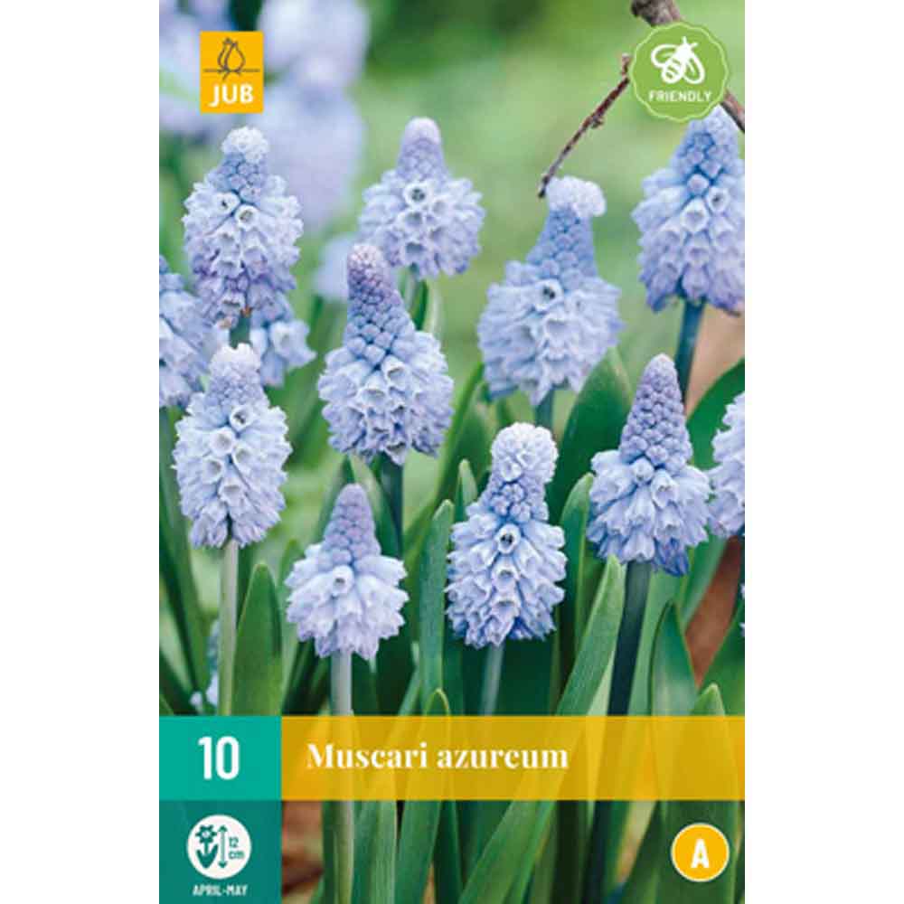 Muscari azureum a des fleurs bleu vif. C'est l'une des premières espèces de Muscari à floraison. Peut être combiné avec des tulipes et des jonquilles. Ils nécessitent une tache lumineuse. Les Muscari peuvent être plantés en bordure ou en pot sur le patio ou le balcon.