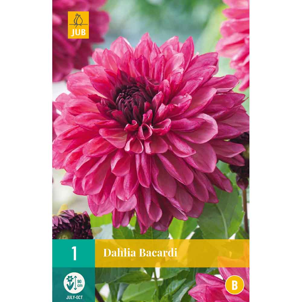 Le dahlia décoratif à grandes fleurs 'Bacardi' a une belle fleur d'été qui vous procurera des mois de plaisir. Le dahlia 'Bacardi' fleurit tout l'été, de juillet jusqu'aux premières gelées. Le dahlia 'Bacardi' atteint environ 90 cm de hauteur. Parfois il est nécessaire de soutenir les tiges florales.