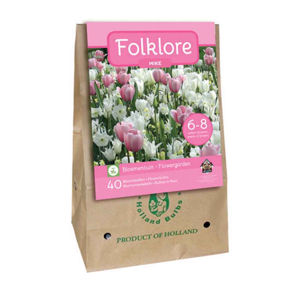 1 sac folklorique Mike avec un mélange de 40 balles. Un joli mélange de diverses ampoules aux couleurs roses et blanches. Bien pour la frontière mais aussi pour dans un pot sur le patio ou le balcon.