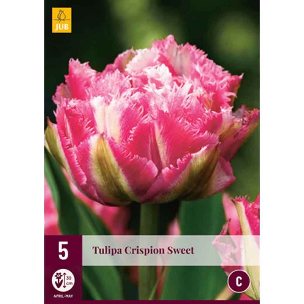 Frangé double rose avec tulipe blanche. Un accroche-regard spécial dans le jardin. Belle tulipe de jardin mais convient également pour un pot sur une terrasse ou un balcon. Agréable à combiner avec d'autres variétés de tulipes frangées et Muscari.